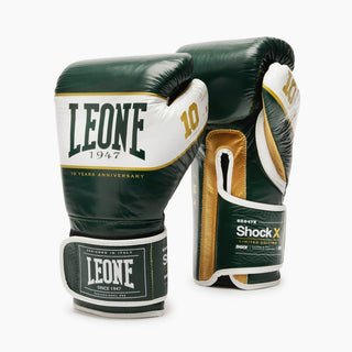 Die Boxhandschuhe Leone Shock X GN047X sind die ideale Wahl für Profisportler. Hergestellt aus 100% Rindsleder, bieten diese Boxhandschuhe außergewöhnliche Haltbarkeit und Komfort. Die Memory-Schaum-EVA-Polsterung gewährleistet einen hervorragenden Schutz und eine ausgezeichnete Stoßdämpfung während intensiver Training-Sessions. Der Klettverschluss bietet eine präzise und sichere Passform. Verziert mit goldenen Details, zeichnen sich die Boxhandschuhe Leone Shock X durch einen auffälligen und raffinierten Look aus. Ideal für häufiges Training, perfekt für Profiboxer.