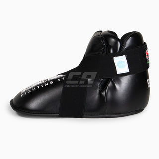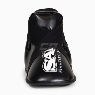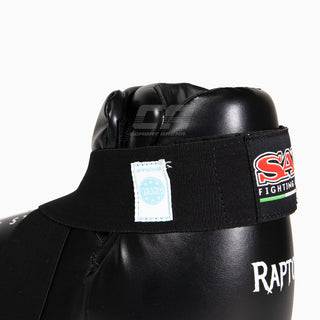 Die Fußschützer SAP Raptor sind aus robustem und hochfestem Material gefertigt. Mit Schaumstoff gepolstert, sind sie mit einer Verstärkung im Bereich des Fußrückens ausgestattet, um dir ultra Schutz zu bieten. Der elastische Verschluss mit hoher Haltekraft sorgt dafür, dass sie während der Leistung fest und stabil bleiben. Ideal für Kick Boxing. Genehmigt von WAKO und mit dem Siegel WAKO versehen.