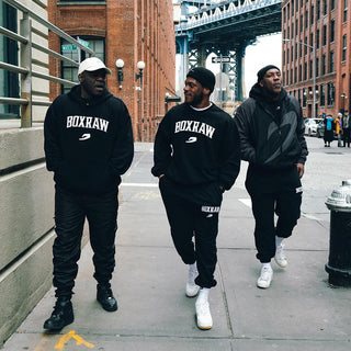 Die Hosen Boxraw East Street schwarzen feiern die authentischen Wurzeln des Boxens mit einem Stil, der vom legendären Madison Square Garden inspiriert ist, um die Mecca des Boxsports zu feiern. Hergestellt aus einer bequemen und strapazierfähigen Baumwollmischung, bieten sie eine entspannte Passform, ideal für den täglichen Komfort oder die Erholung nach dem Training. Das Design wird durch einen logo im varsity-Stil am Bein, Bündchen und Gürtel mit Kordelzug vervollständigt. Die seitlichen Reißverschlusstaschen gewährleisten Praktikabilität und Sicherheit, während das Patch an der Taille einen unverwechselbaren Touch hinzufügt. Hosen gedacht für die Leidenschaft für das Boxen innerhalb und außerhalb des Fitnessstudios.