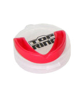 Der Mundschutz Top Ring Professionelle Bunte mit Hülle ist ein einbogiger Schutz, ideal für Kampfsportarten. Bequem und selbstformend, schützt er Athleten vor Stößen, reduziert das Risiko von Verletzungen an Zähnen und Mund, indem er die empfangenen Schläge abfedert. Er formt sich mit heißem Wasser und nimmt die Form der Zähne des Trägers an:, wodurch der Mundschutz maximalen Komfort bietet und fest sitzt, ohne das Risiko, dass er sich löst. Die Hülle ermöglicht es, ihn nach der Benutzung sicher aufzubewahren. Die Juniorgröße ist nur transparent erhältlich.