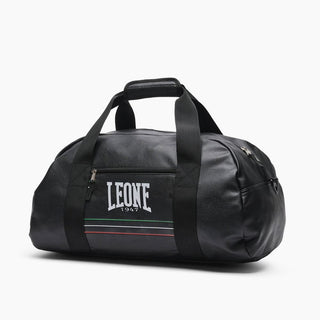 Die Leone Flag AC958 ist ein Sporttasche, das Eleganz und Praktikabilität kombiniert. Hergestellt aus Kunstleder, verfügt es über eine große zentrale Tasche mit einem Fassungsvermögen von etwa 40 Litern und einer Seitentasche. Ausgestattet mit Reißverschluss, Tragegriffen und Schultergurt, gehört dieses Sporttasche zur Flag:-Kollektion in Schwarz mit kontrastierenden logo Leone, gekennzeichnet durch das trikolore Detail.
