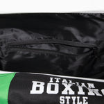 Sporttasche Leone Italien AC905, ideal zum Transportieren von Kleidung und den Schutzausrüstung, dank seiner Abmessungen, 32 cm Durchmesser und 60 cm Länge. Hergestellt aus robustem Nylon, hat dieser Sporttasche Boxsack drei Taschen, eine große mittlere und zwei seitliche. Die italienische Trikolore macht diese Tasche einzigartig, die jeder Kämpfer bei sich tragen sollte. Die Qualität wird durch die italienische Marke Leone 1947 garantiert, die seit mehr als sechzig Jahren Artikel für Kampfsportarten herstellt.