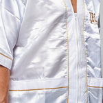 Der Trainer Jacke Leone Premium AB262 ist Teil der Premium-Linie, die entwickelt wurde, um den Matches einen Hauch von Stil und eine Nuance von Eleganz zu verleihen. Weich und leicht, das Trikot ist aus Satin gefertigt, komfortabel und angenehm zu berühren. Mit kurzen Ärmeln, Frontreißverschluss und Seitentaschen ist es ideal für die Sekunden, die in die Ecke ihrer Athleten gehen. Die logo Stickerei und die goldenen Akzente veredeln das Design des Produkts. Ausgestattet mit logo Leone auf dem Rücken, ist das Trainer Jacke Leone Premium in zwei Farben erhältlich: schwarz und weiß.