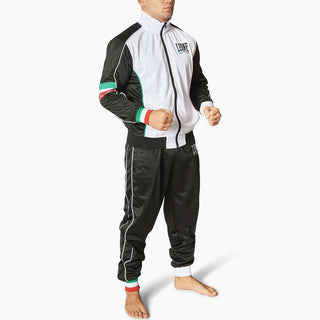 Der Trainingsanzug komplette Leone AB796 ist aus Polyester gefertigt, einem bequemen und langlebigen Stoff. Es ist weich zu tragen, sowohl für Männer als auch für Frauen geeignet. Es hat einen hohen Kragen und einen praktischen zentralen Reißverschluss. Die Bündchen an Armen und Beinen sind gerippt, eng und anliegend. Das logo Leone ist auf Jacke und Hosen vorhanden. Erhältlich in vier Farben und verschiedenen Größen. Hervorragend geeignet für verschiedene Anlässe, wie Freizeit mit Freunden oder für ein leichtes Training im Freien.
