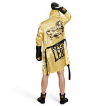 Die Boxmantel Leone Iuter AB01IU ist perfekt, um dich mit einem originellen und auffälligen Stil in den Ring zu begleiten. Hergestellt aus weichem Satin, ist sie mit einer Kapuze und einem kontrastierenden Gürtel in der Taille ausgestattet. Der weiche Stoff und die wertvollen Details, wie die gestickten Patches und die sublimierten Drucke, machen sie ideal, um stilvoll in den Ring zu steigen. Hergestellt in Zusammenarbeit mit IUTER, einer Mailänder Streetwear-Marke, verleiht sie dir einen kraftvollen und raffinierten Look.
